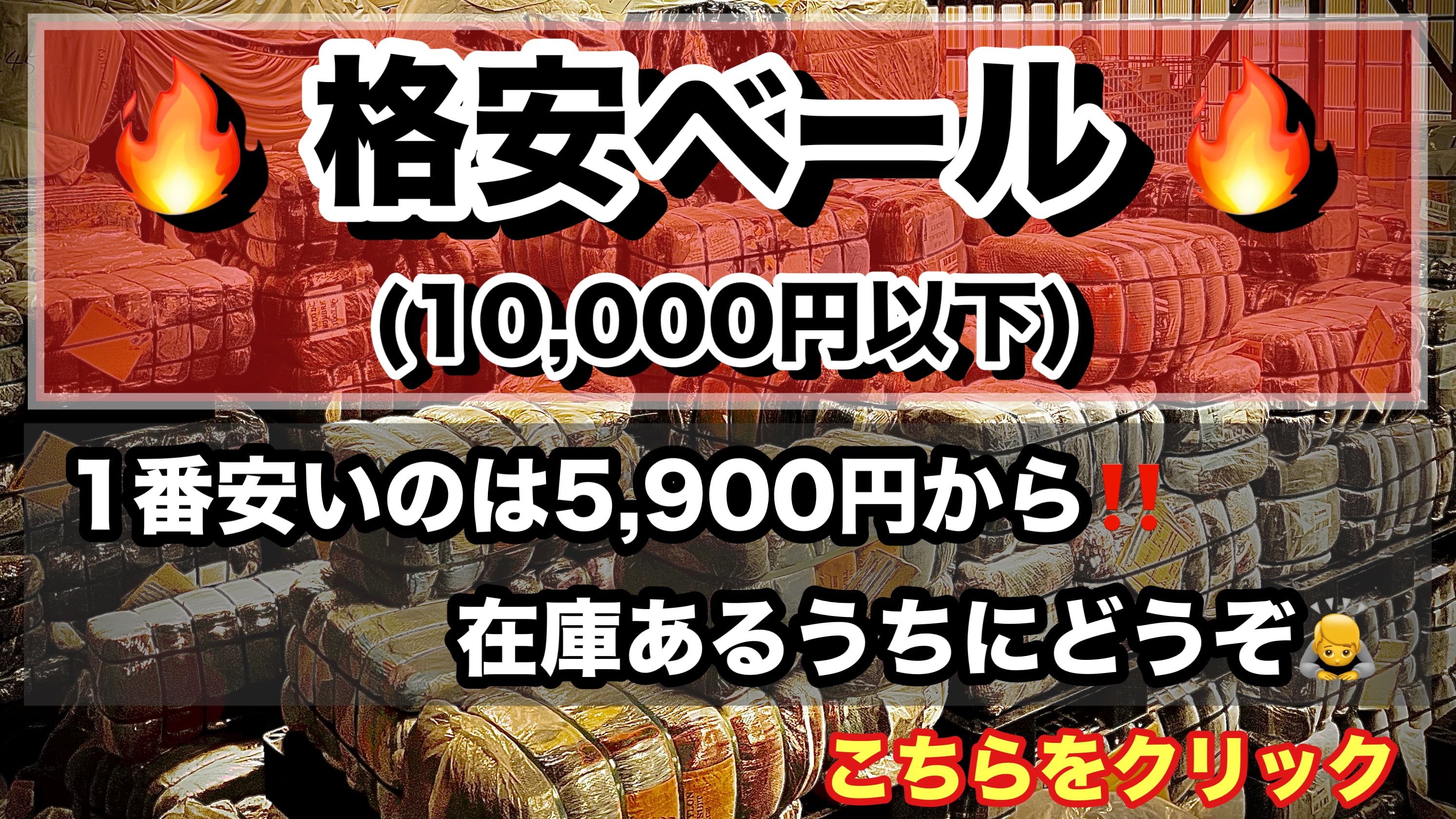 裾野倉庫(敷地3000坪)では古着屋さんや業者様向けに卸売りを行っており、不定期で一般の方にも販売しています。